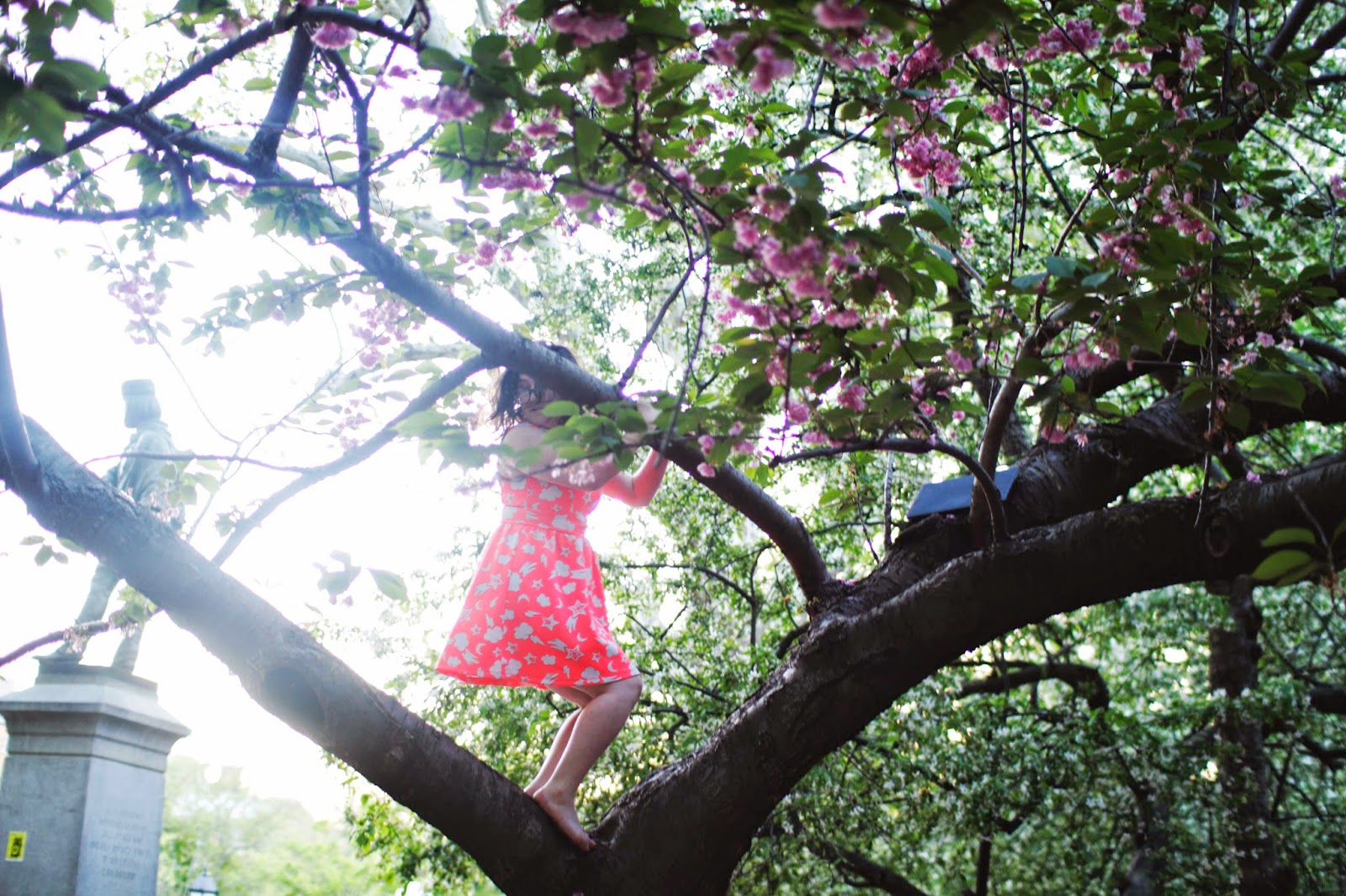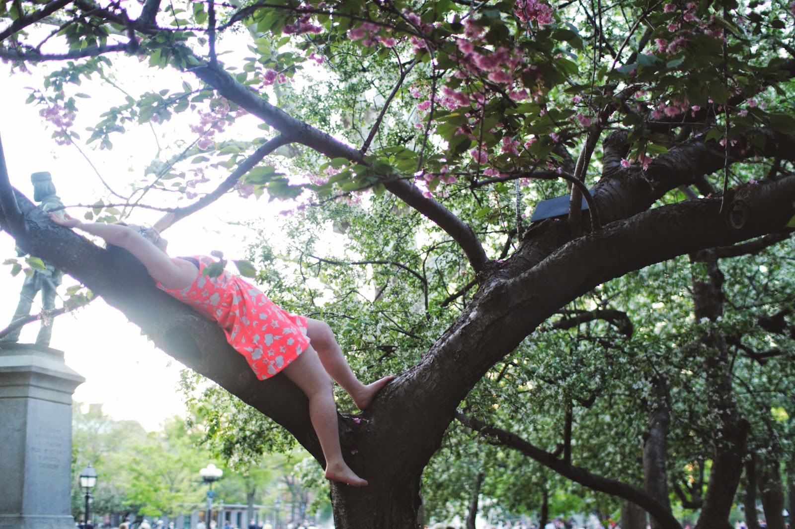 Later on my other roommate Leah joined me under the cherry blossoms, and we climbed a tree to watch the sunset. I am not exaggerating when I say that climbing that tree was one of the best moments of my entire year. Up with the birds, standing on tiptoe to see over the branches and out to New York City, and listening to Leah read her poetry, I haven't felt this free and happy in a very long time.