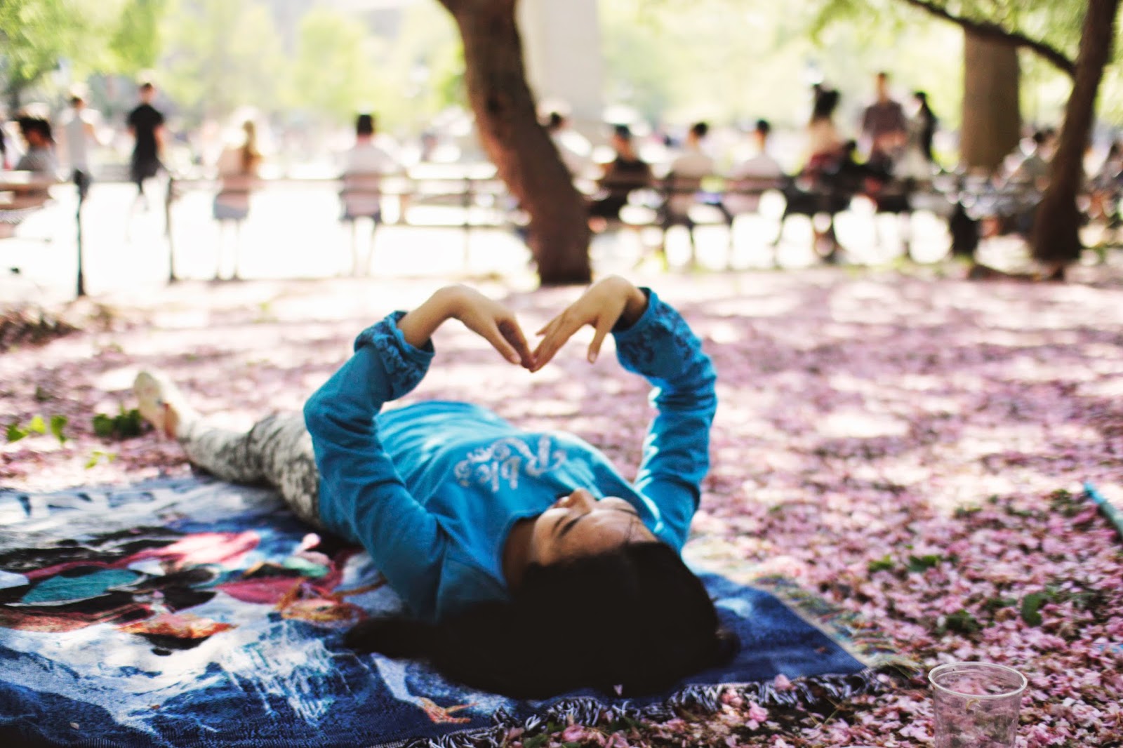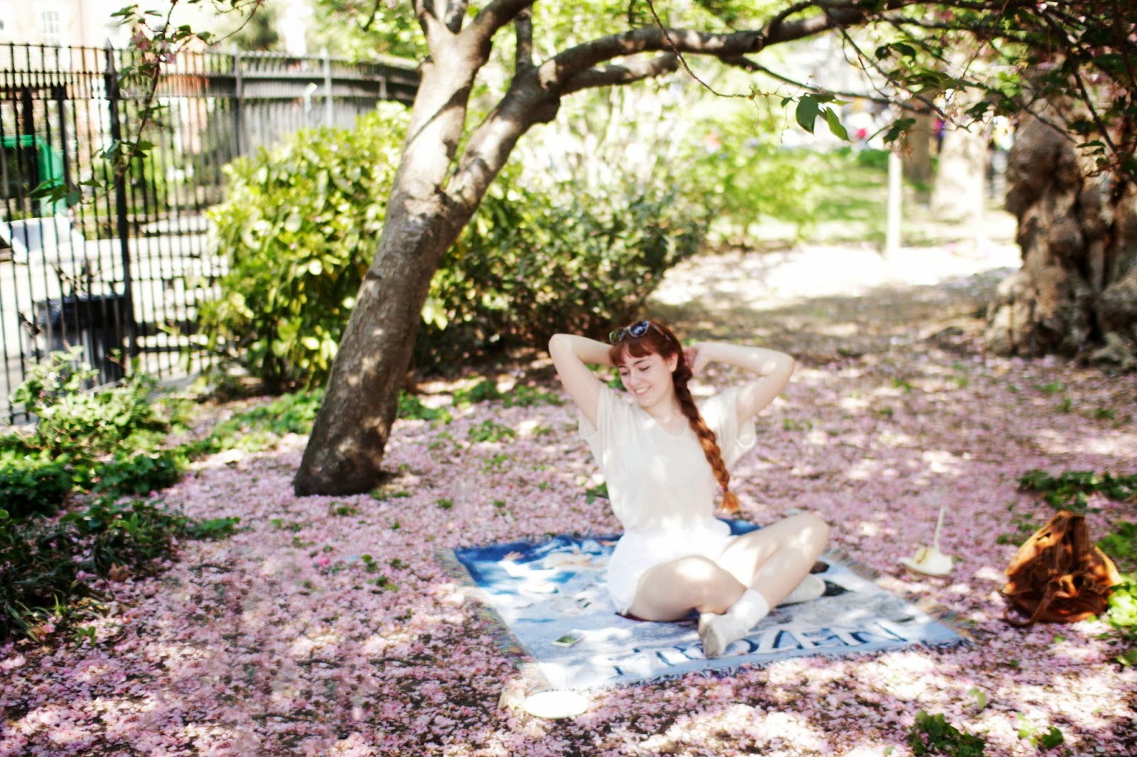 Do you ever have those moments when absolutely everything around you is at peace, and you are at peace, and you just feel like crying tears of joy because life is so beautiful? Well as I sat on my blanket in Washington Square Park, watching the cherry blossoms blow down on my face like snowfall, I had one of those overly-emotional moments.